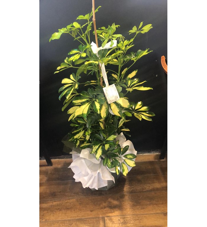 Çift Gövdeli Hacim ve Canlılık. Parlak, el şeklindeki gür yapraklarıyla (şemsiye ağacı) tropikal bir hava yaratan, iki gövdesi sayesinde daha dolgun ve etkileyici bir yeşil doku sunan dayanıklı bir bitkidir.